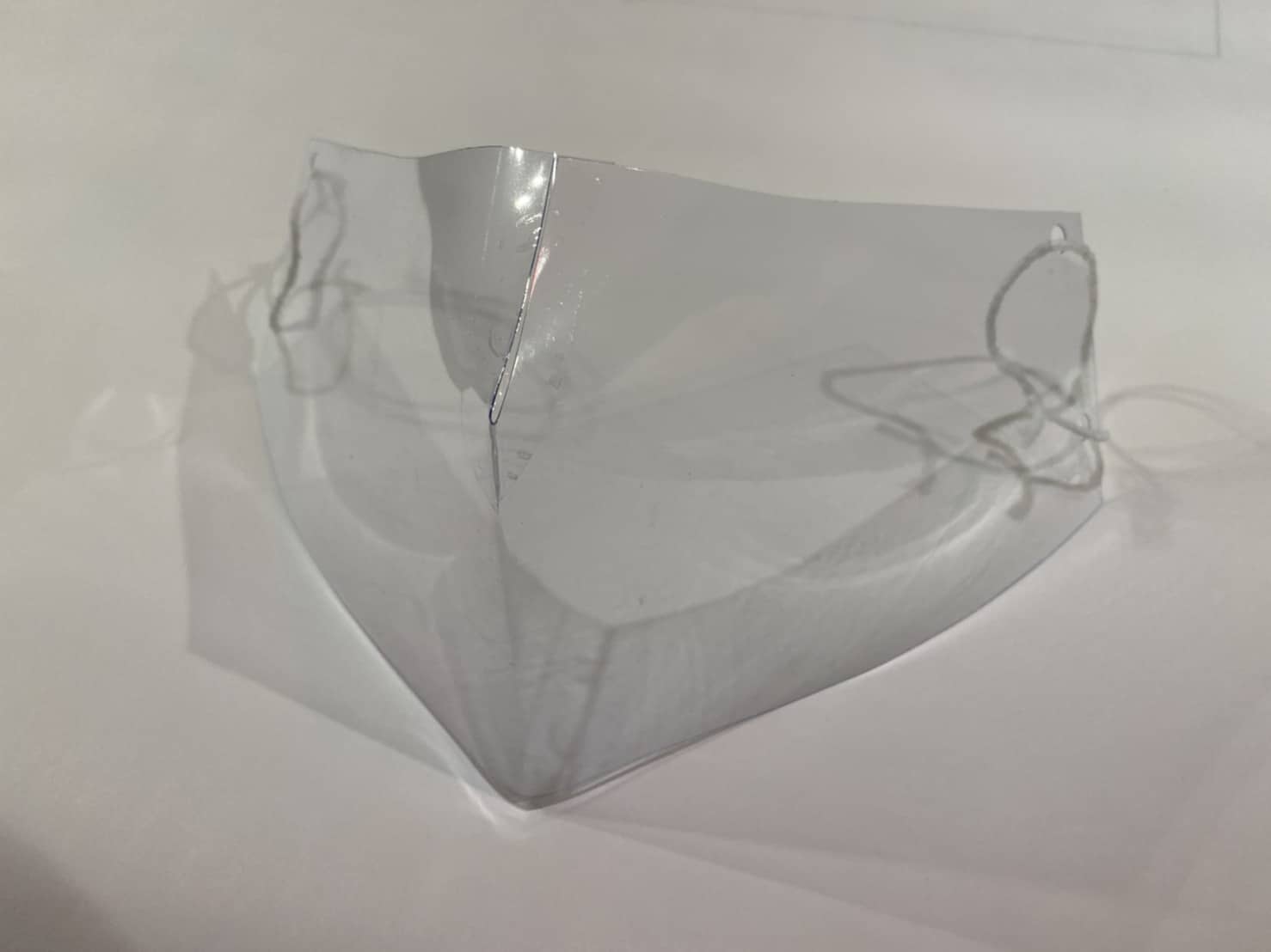 フェイスシールドは口元全体を覆えないという不安点があるのと比較し、材料で特に軟質カードケースのものを使用したこの透明マスクはビニールに近いので、自分の顔のサイズにフィットして作ることができ、機能的にも非常に優れていると思います。
