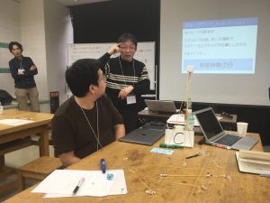 チームビルディングのグループワークでは、「マシュマロチャレンジ(*2)」というパスタとテープなど限られた道具を使って、マシュマロを高く置くというミッションを行いました。パスタは思ったより強度が弱く、完成イメージの共有が難しく、ミッションは悪戦苦闘しました。取り組むなかで、どう進めていけば良いか、聴覚障害の人がチームを引っ張るという経験が少ないせいか、迷いを感じました。特に、時間が迫っている時、指示待ちになってしまう人も見受けられました。慎重になりすぎた部分もあったのではないでしょうか。しかし、その中でもそれぞれが自らの立ち回りを考え出し、なんとかタワーを完成することができました。