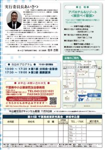 千葉県中小企業家同友会主催「第44回千葉県経営研究集会」の障害者雇用をテーマとする第三分科会にて、インフォメーションギャップバスター 理事長 伊藤芳浩が、ろうバス運転士松山 建也さんと、松山さんの勤務先(東京バス)の取締役統括本部長佐藤 智彦さんと一緒に登壇いたします。