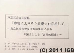 6/6(木)に弁護士会館にて開催された東京三弁護士合同研修「障害によりそう弁護士を目指して 〜東京都障害者差別解消条例に学ぶ 弁護士による『合理的配慮』〜」にて聴覚障害者当事者としてNPO法人インフォメーションギャップバスター 理事長 伊藤 芳浩がシンポジストとして登壇しました。
