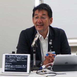 三浦宏之氏:株式会社プラスヴォイス 代表取締役社長。聴覚障がい者が直面する情報コミュニケーションバリアに着目し、1998年に起業。以来、電話リレーサービスや遠隔手話通訳等、ICTを活用した聴覚障がい者の情報通信バリアフリーに力を注ぐ。現在では、行政機関(厚生労働省、東京都、等)や大手企業(全日本空輸、三菱UFJ銀行、等)にサービスを提供し、総務省の「電話リレーサービスに係るワーキンググループ」のオブザーバーや、実務者会議の構成員等を務めている。