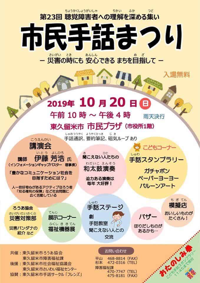 【イベントのお知らせ(10/20)】第23回 東久留米市:市民手話まつり
