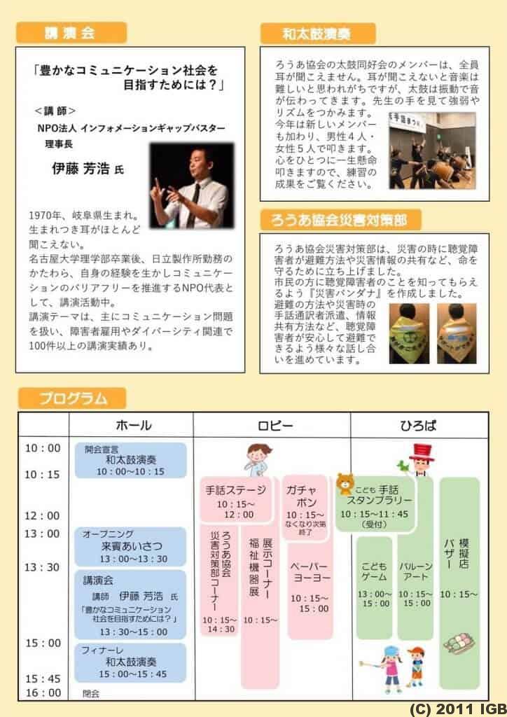 第23回 東久留米市:市民手話まつり「聴覚障害者への理解を深める集い」にて、インフォメーションギャップバスター理事長 伊藤芳浩が登壇いたします。