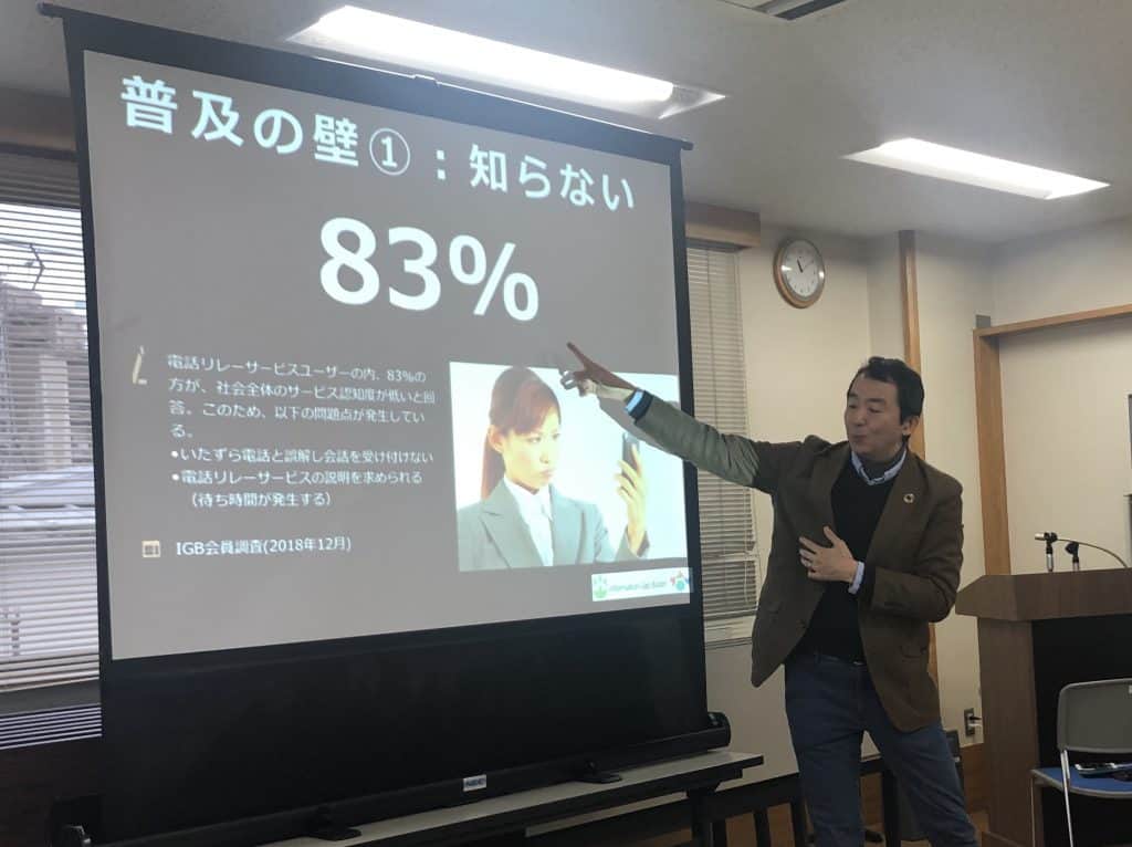 - 電話リレーサービス詳細について説明する伊藤 芳浩IGB理事長