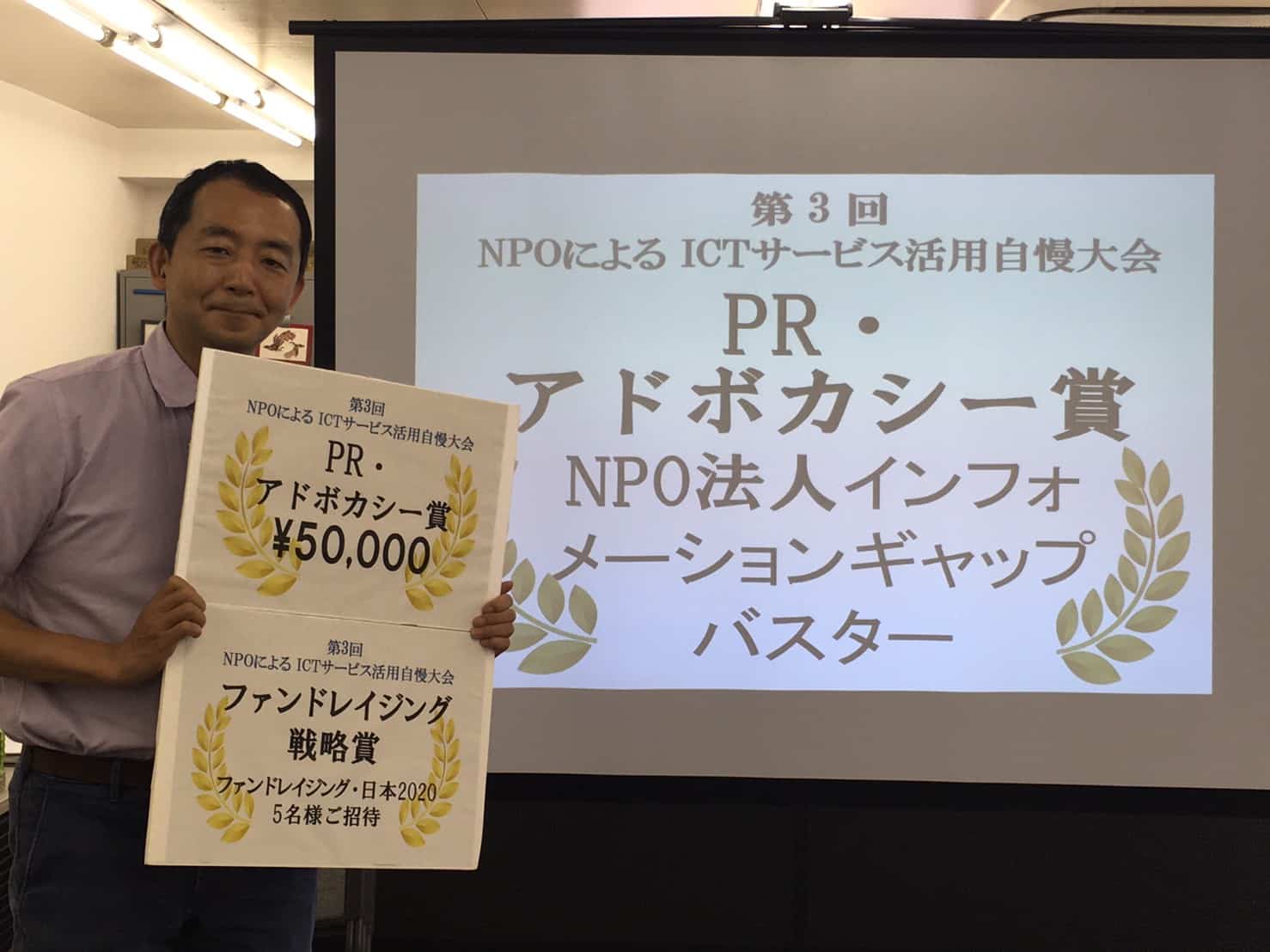 8/26(水)に、特定非営利活動法人 NPOサポートセンターにて開催された【NPOによるICTサービス活用自慢大会 第3回】に数多くの応募があった一次審査(書類)にパスしたファイナリストとして登壇し、何と、「PR・アドボカシー賞」「ファンドレイジング戦略賞」のW受賞となりました!