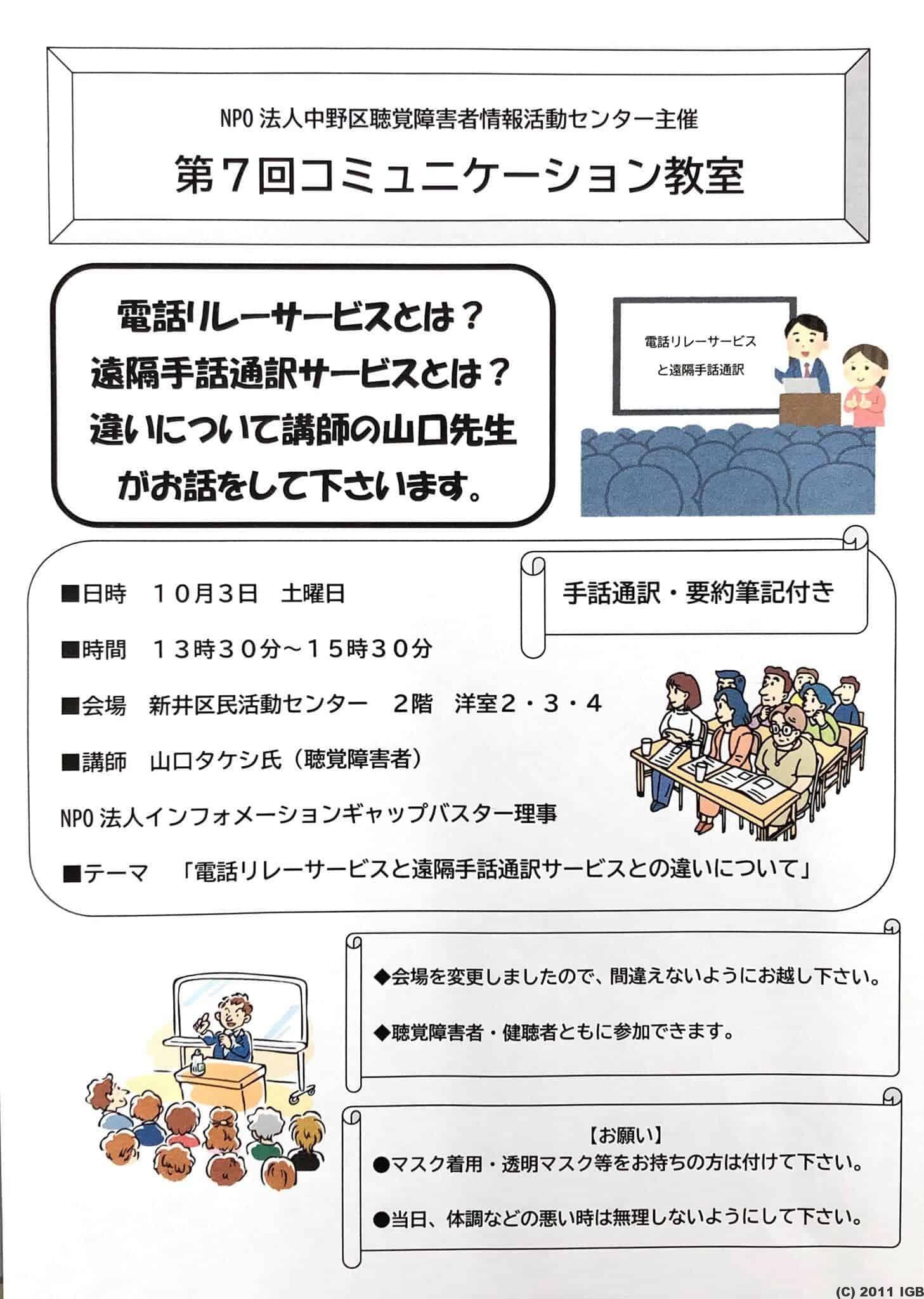 【ご報告】NPO法人中野区聴覚障害者情報活動センター主催「第7回コミュニケーション教室」(2020/10/3)