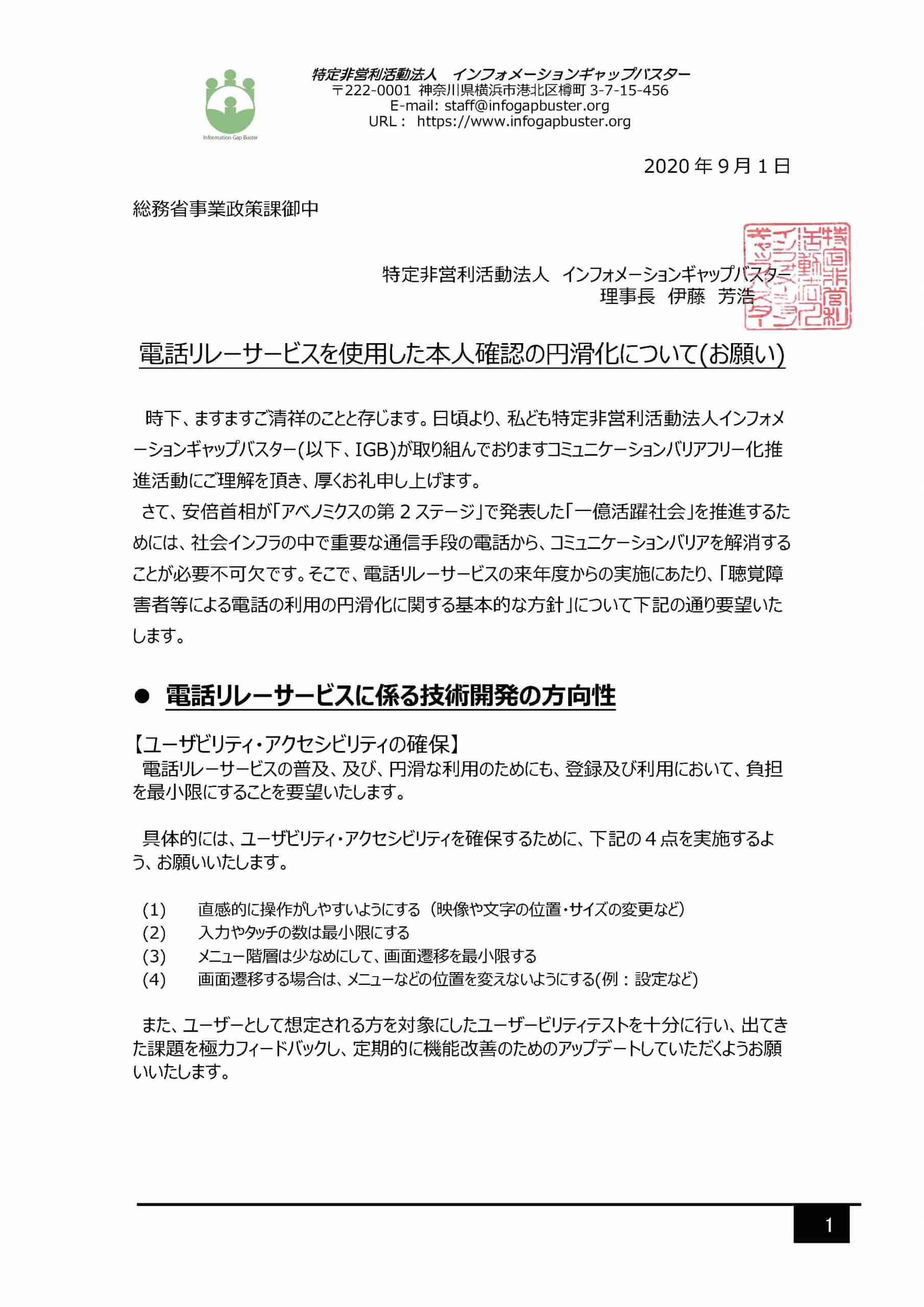 NPOインフォメーションギャップバスターから提出した意見書の全文は下記で参照できます。