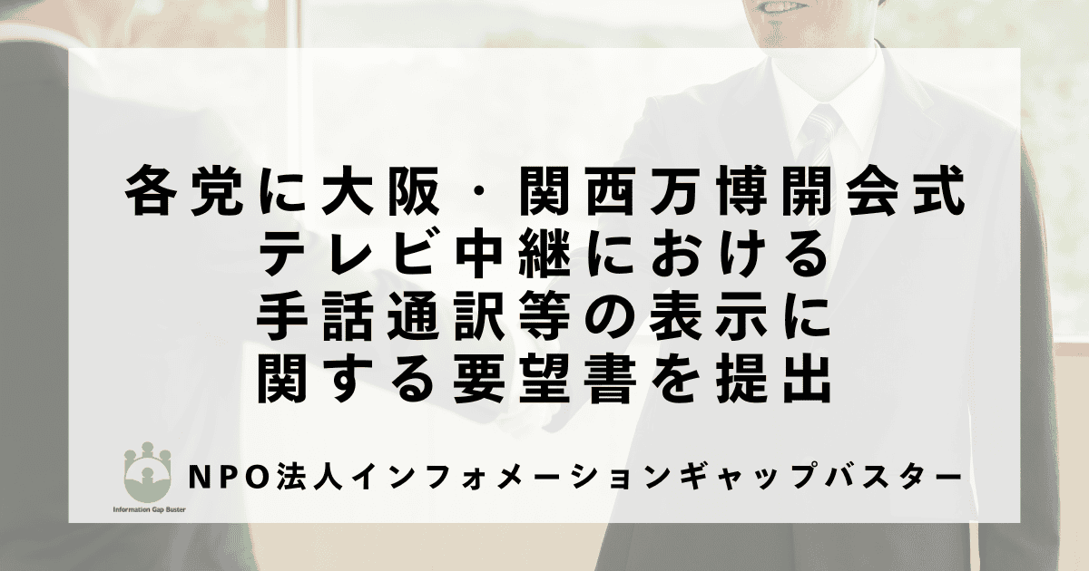 【ご報告】各党に大阪・関西万博開会式テレビ中継における手話通訳等の表示に関する要望書を提出